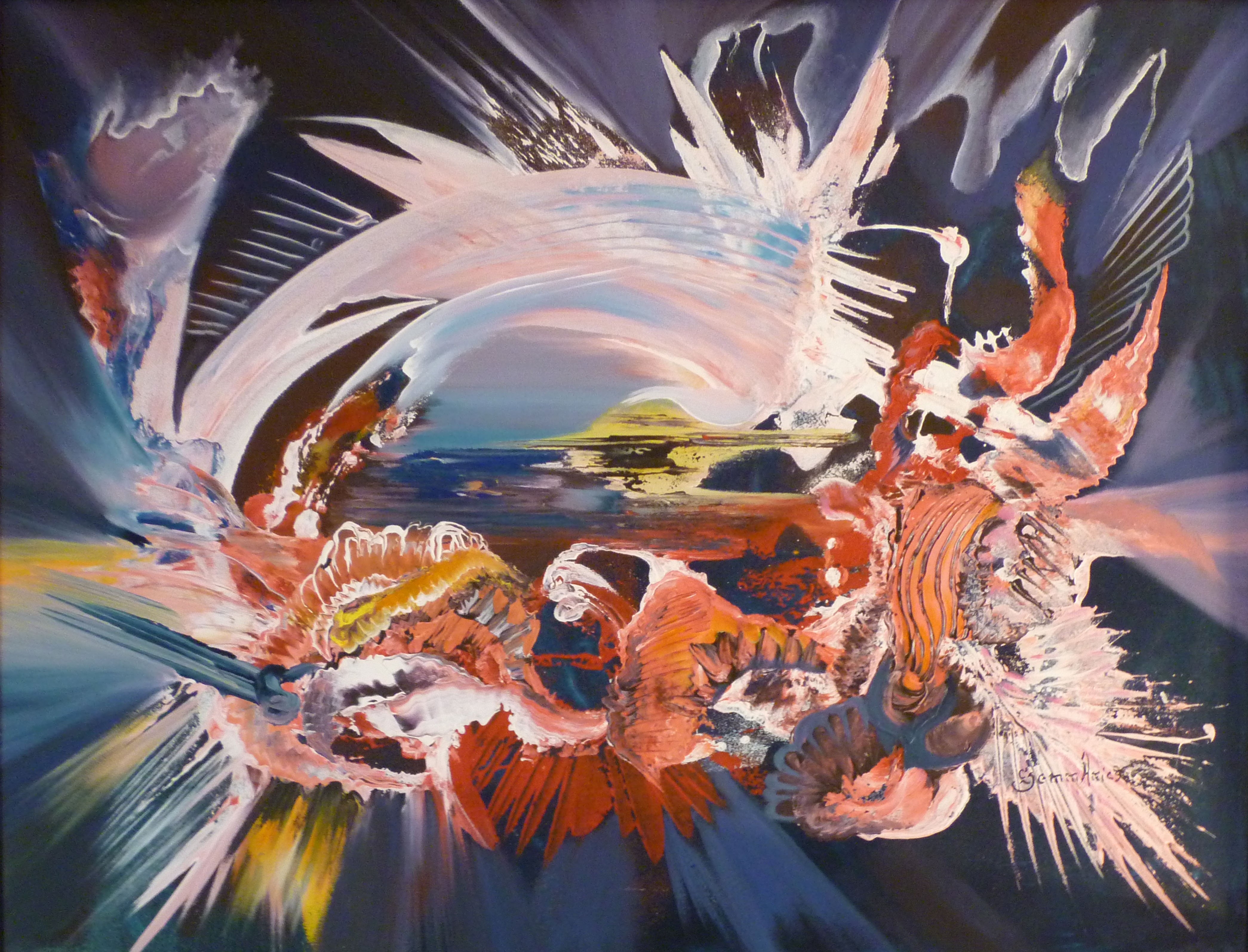 Dans sa quête d’absolu mystique, la peinture de Gemmanick trouve un nouvel écho : les “Vibrations”. La couleur redevient lumière diffuse, oscillation rapide dont le point d’équilibre est l’impression de l’oeil pour l’expression de génie.