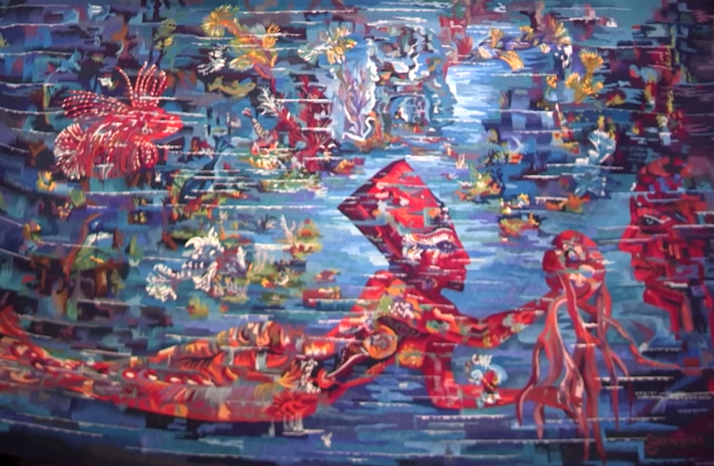 Carnaval sous la mer : extrait de la tapisserie d’Aubusson et timbre d’outre-mer